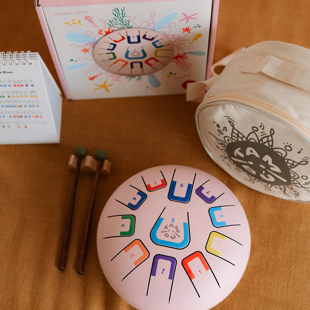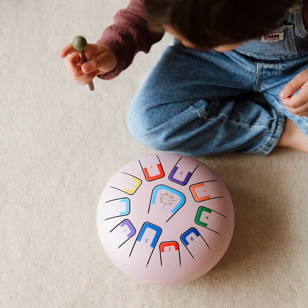 • Tongue drum with a colour and numbering coding system