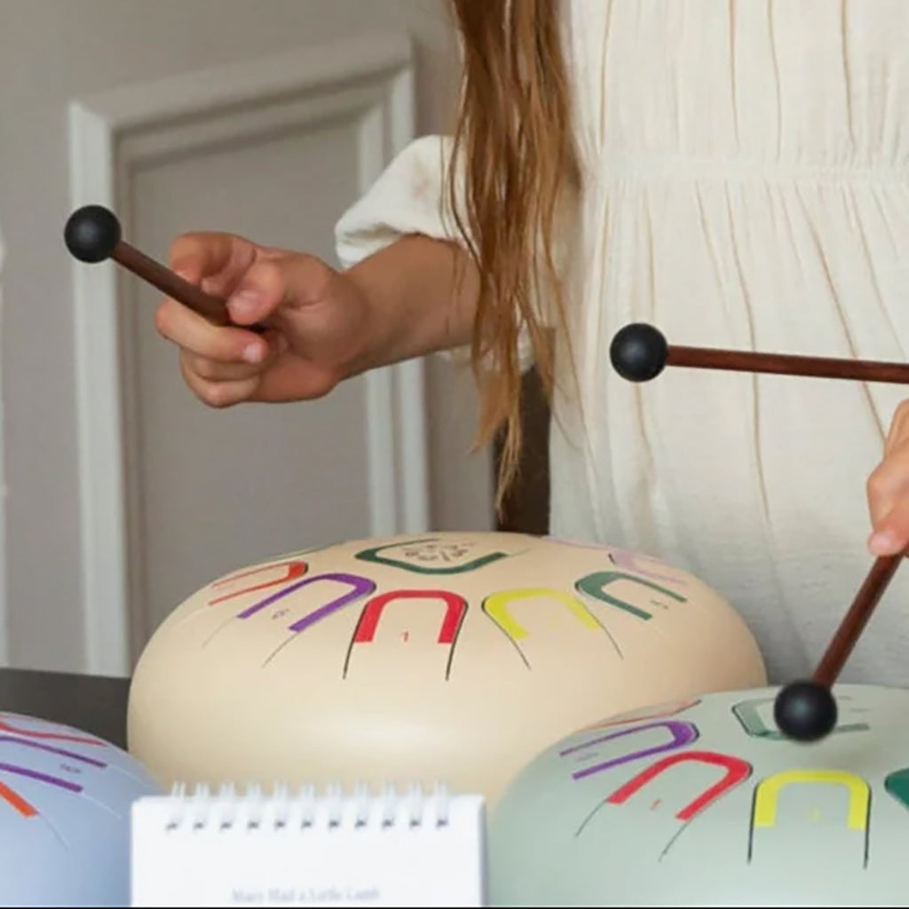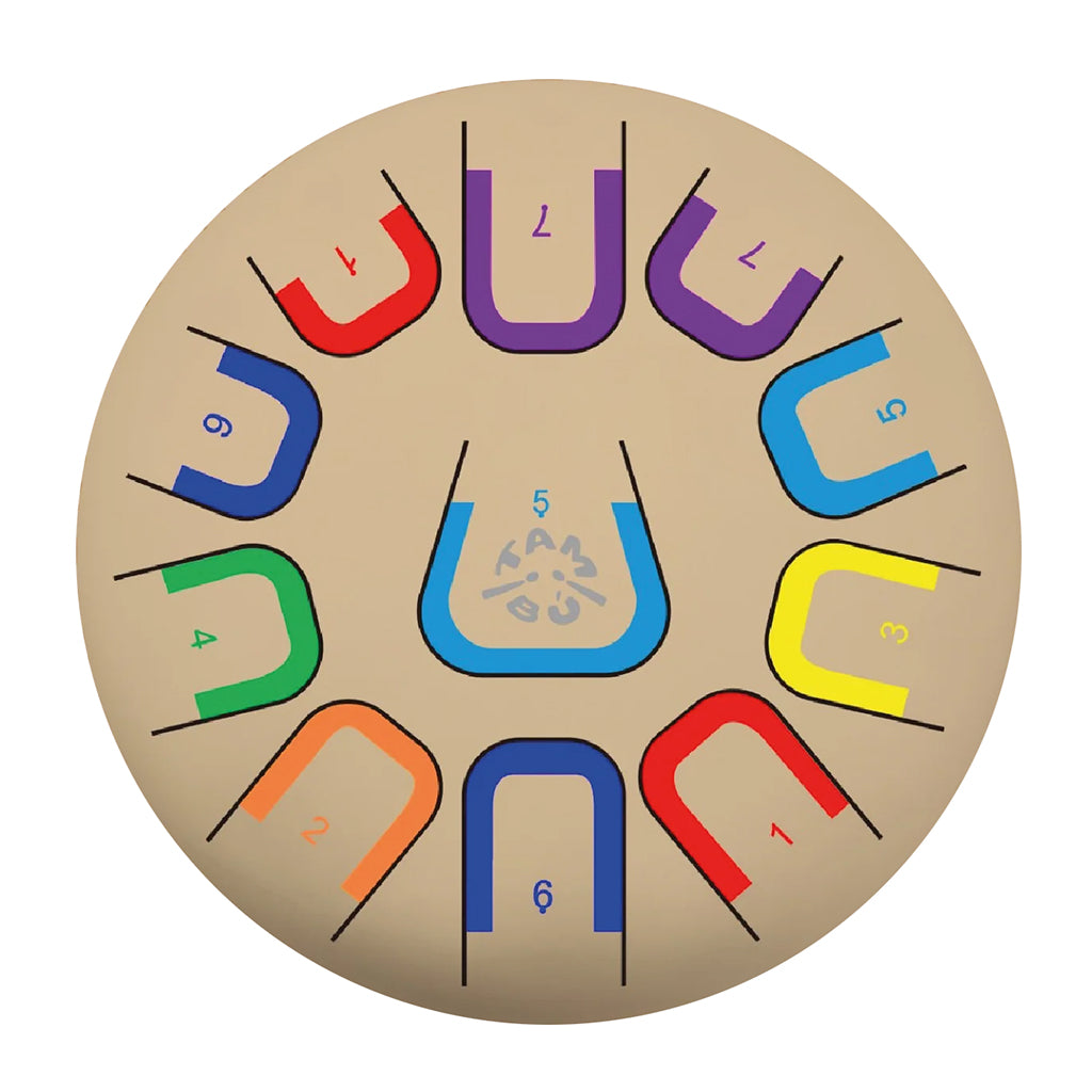 • Tongue drum with a colour and numbering coding system